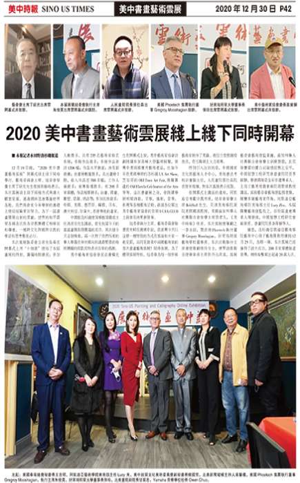 艺委会主席丁绍光先生出席云开幕式并致辞本届展览组委会执行主席朱俊英先生出席云开幕式并讲话人民画院院长张仕森先生出席云开幕式并致辞美国Phoetech 集团执行董事Gregroy Mooshagian 致辞。好莱坞明星大学董事长张玲出席云开幕式致辞。美中艺术家协会会长苗广耀出席云开幕式并致辞。左起:美国奉商总会秘书长王吉明、阿凯迪亚艺术学院美术部主任Lucy 朱、美中经贸文化美术委员会副秘书长杨国芳、北美新闻纵横主持人黄馨仪、美国Phoetech 集团执行董事Gregroy Mooshagian,...