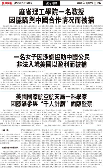 美国国家航空航天局一科学家因隐瞒参与“千人计划”面临监禁