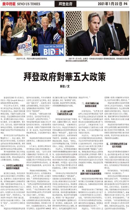 2020年3月,拜登和哈里斯在竞选活动现场。2021年1月19日,安东尼·布林肯出席参议院外委会确认听证会,就他被提名为美国国务卿的人事提名接受议员提问。当地时间2021年1月20日,约瑟夫·拜登(JosephR.BidenJr.)宣誓就任美国第46任总统。早在去年11月25日,中国国家主席习近平就已致电祝贺。习近平在贺电中指出,推动中美关系健康稳定发展,不仅符合两国人民根本利益,而且是国际社会的共同期待。希望双方秉持不冲突不对抗、相互尊重、合作共赢的精神,聚焦合作,管控分歧...