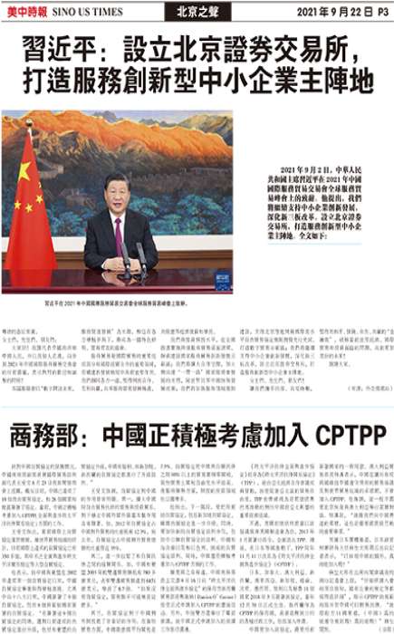 2021年9月2日,中华人民共和国主席习近平在2021年中国国际服务贸易交易会全球服务贸易峰会上的致辞。他提出,我们将继续支持中小企业创新发展,深化新三板改革,设立北京证券交易所,打造服务创新型中小企业主阵地。全文如下:尊敬的各位来宾,女士们,先生们,朋友们:大家好!我谨代表中国政府和中国人民,并以我个人名义,向参加2021年中国国际服务贸易交易会的所有嘉宾,表示热烈的欢迎和诚挚的问候!本届服贸会以“数字开启未来,服务促进发展”为主题,相信在各方积极...