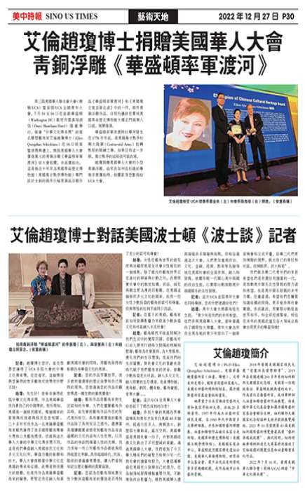 艾伦赵琼捐赠美国华人大会青铜浮雕《华盛顿总统率军渡河》