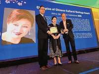 拍得青铜浮雕“华盛顿渡河”的李惠琼(右),与曾慧燕(左)和赵琼合照留念。记者:赵琼博士您好,首先恭喜您获得了UCA本届大会的中华文化传承奖。在您看来,这个奖项与您获得的众多艺术成就奖有什么不同?赵琼:先生好!很荣幸获得此届中华文化传承奖。作为美国华裔我自豪自己的中国传统。众所周知,美国是一个移民国家,整个国家的发展与成就都与移民息息相关 。二十多年来我作为一名美籍华裔艺术家虽然获得了很多国际艺术专业大奖和公共艺术奖项,但都与这次华人大会的中...