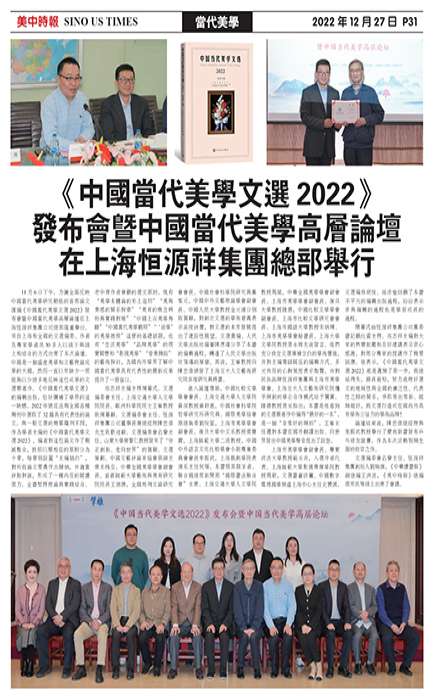11月6日下午,力图全面反映中国当代美学研究动态的首部论文汇编《中国当代美学文选2022》发布会暨中国当代美学高层论坛在上海恒源祥集团公司总部隆重举行。来自上海和全国的文选编委、作者及专家学者共30多人以线下与线上相结合的方式出席了本次论坛。中国是一个盛产美学和文艺理论成果的大国,然而一直以来缺少一部能够以少总多地反映这些成果的文选类著作。《中国当代美学文选》的编辑出版,恰好弥补了学界的这一缺憾。2022年号从近期全国各种期刊中选取了32篇具有代表性...