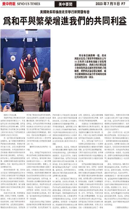 美国财长耶伦在北京举行新闻发布会:为和平与繁荣增进我们的共同利益