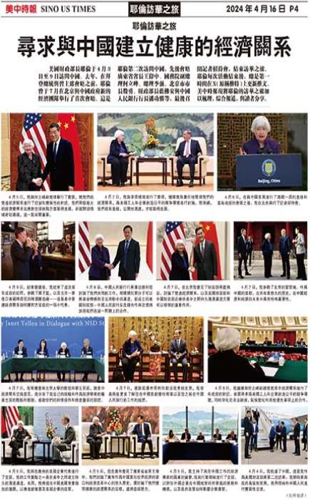 美国财政部长耶伦于4月3日至9日访问中国。去年,在拜登总统与习主席会晤之前,耶伦曾于7月在北京与中国政府新的经济团队举行了首次会晤。这是耶伦第二次访问中国,先后会晤广东省省长王伟中、国务院副总理何立峰、总理李强、北京市市长殷勇、财政部长蓝佛安与中国人民银行行长潘功胜等,最后召开记者招待会,结束访华之旅。耶伦每次活动结束后,总是第一时间在X(原称推特)上更新推文。美中时报现将耶伦的访华之旅加以梳理,综合报道,与读者分享。4月7日,我与李强总...