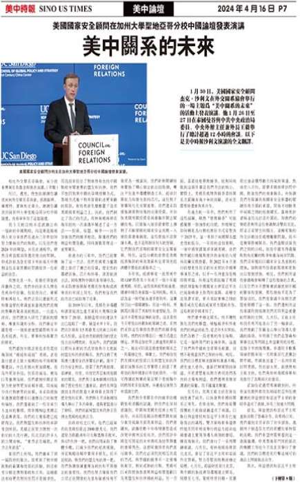 1月30日,美国国家安全顾问杰克·沙利文在外交关系协会举行的一场主题为“美中关系的未来”的活动上发表演讲。他1月26日至27日在泰国曼谷与中共中央政治局委员、中央外办主任兼外长王毅举行了总计超过12小时的会谈。以下是美中时报沙利文演讲的全文翻译。美国国家安全顾问沙利文在加州大学圣地亚哥分校中国论坛发表演讲。相比外交关系委员会,至少我有勇气在布鲁金斯发表演讲。(笑声)所以,迈克,我想说谢谢你让我回到外交关系委员会,感谢苏珊、库尔特、夏琳和史蒂夫,谢...