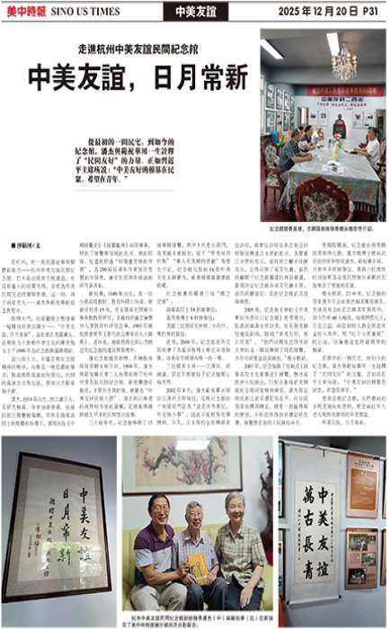 从最初的一间民宅,到如今的 纪念馆,潘杰与范祝华用一生诠释 了“民间友好”的力量。正如习近 平主席所说:“中美友好的根基在民众,希望在青年。” 在杭州,有一处充满故事与情怀的地方——杭州中美友谊民间纪念馆。它不是由国家工程建造,也没有庞大的经费支持,却成为中美民间交往的独特象征。这一切,源于两位老人——潘杰与范祝华的信念与坚守。纪念馆馆长助理、志愿服务队队长杨永根在作介绍。杭州中美友谊民间纪念馆创始馆长潘杰(中)与范祝华(右)在家接见了美...