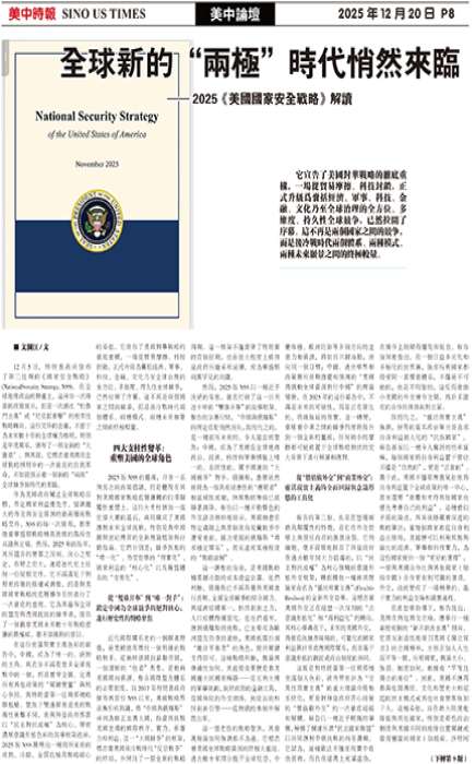 它宣告了美国对华战略的彻底重构,一场从贸易摩擦、科技封锁,正式升级为囊括经济、军事、科技、金融、文化乃至全球治理的全方位、多维度、持久性全球竞争,已然拉开了序幕。这不再是两个国家之间的竞争,而是后冷战时代两个体系、两种模式、两种未来愿景之间的终极较量。 2025年12月5日,特朗普政府发布了第二任期的《国家安全战略》(NationalSecurityStrategy,NSS)。在全球地缘政治的舞台上,这并非一次寻常的政策宣示,而是一次堪比“杜鲁门主义”或“尼克松冲击”...