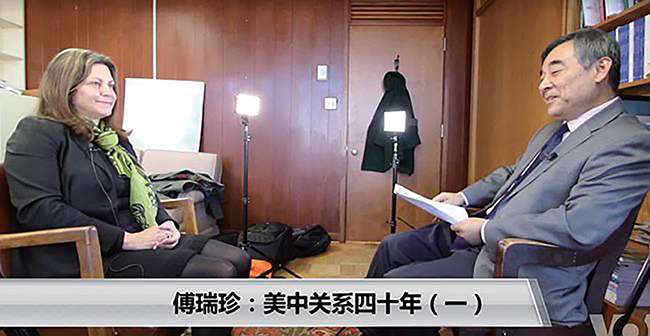 傅瑞珍:在我还是小孩子的时候, 我就在电视上痴迷地观看了尼克松的中国之行。当时我父亲是尼克松总统的首席翻译,所以全家都聚集在我们家一台很小的黑白电视旁边,在电视上看我父亲。从那时起, 美中关系就成了我们家在吃饭桌上的不断的话题。