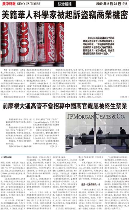 美国司法部2016年公布的文件显示,摩根大通制定了所谓“子女项目”(Sons and Daughters),利用为中国高官和企业高管亲属提供实习或就业机会,赢得数亿美元的交易。