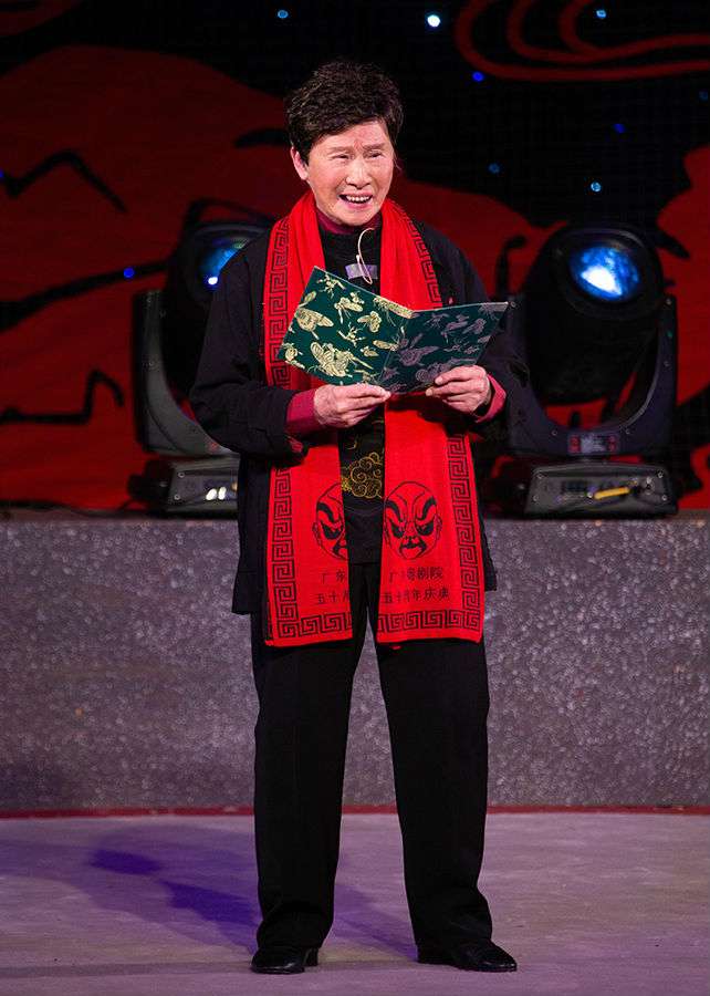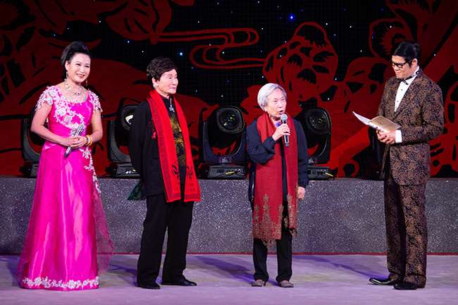 95岁的白超鸿、88岁的林小群夫妇引领一众粤剧、曲艺泰斗上台亮相,全体演员上台致敬并大合影留念