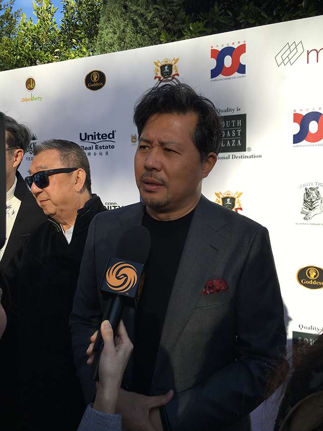 美中企业家商会会长孙文铁(左三)南海岸廣場旅遊市場總監全泓康(左四)美国著名电视演员高圣远(周迅丈夫)在活动现场