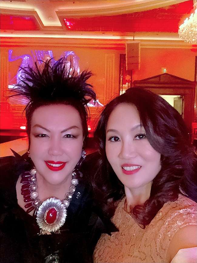 美国著名时装设计师Sue Wong (左)美国银行资深副总裁Queena Lee(右)