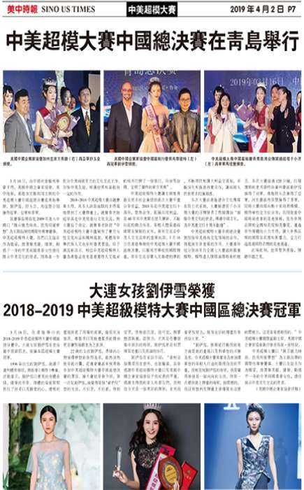 3月16日,由中国社会艺术学会支持,美国中国企业家协会,美中时报,青岛市文联共同主办的中美超模大赛中国区总决赛在青岛举办。刘伊雪、舒玉含、马佳慧分别获得冠军、亚军和季军。