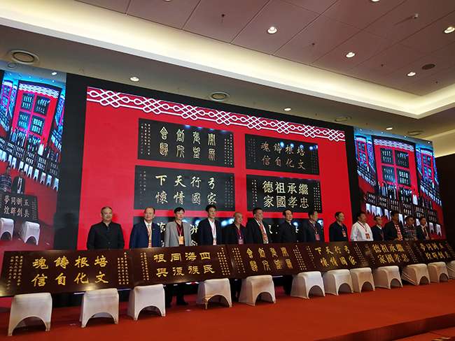 会上,来自港、澳、台,新疆维吾尔自治区,重庆直辖市,革命老区龙岩的社团代表向“中国传统文化促进会张挥文化委员会”赠送了内涵深刻,思想凝重,立意高远的牌匾:开张创会,众望所归。龙岩(篆体)继承祖德,忠孝国家。香港(宋体)培根铸魂,文化自信。重庆(魏体)四海同根,民族复兴。台湾(隶体)弓行天下,家国情怀。新疆(行楷)五洲同梦,共创辉煌。澳门(楷体)。