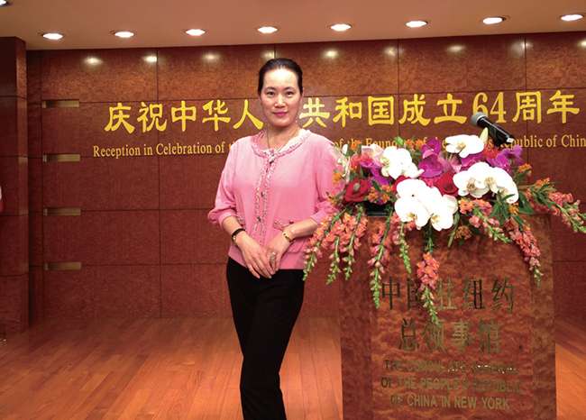 2013 年叶丹参加纽约总领馆国庆64 周年招待会。