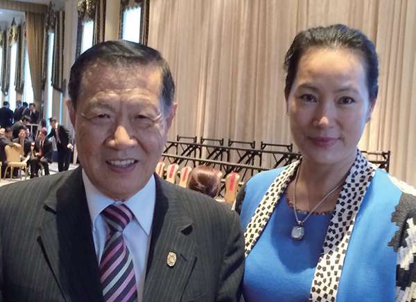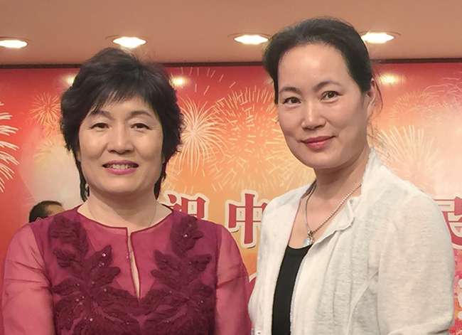 2015 年叶丹参加国庆66 周年,和纽约总领事章启月合影。