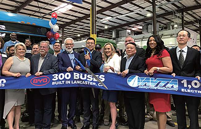 洛杉矶郡郡政委员巴格、帕姆戴尔市市长霍夫巴纳、羚羊谷交通局(AVTA)与美国运输行业工会代表,以及比亚迪兰卡斯特工厂员工四百多人出席活动。