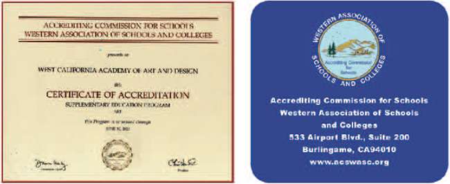 学院于2017年获得美国西部院校联盟 (WASC) 官方认证。WASC的官方认证,意味着汪老师美术学院颁发的毕业证将被美国中学和大学认可,也标志着汪老师美术学院成为了一所被美国权威学历认证机构所认可的专业教育院校。获得WASC全面认证,标志着汪老师美术学院的教学成果已跻身世界同类学校的先进行列 。汪老师美术学院的毕业生在申请美国大学时获得了更好的信誉担保和资信信任度,有利于跻身排名更前的学校。例如美国顶尖艺术院校Art Center College of Design 和Otis都是这个认证体系的,那就意味着学生在汪老师美术学院学习的经历和成绩,在申请这些名校时会获得更高的认可度,比其他申请者更具优势。