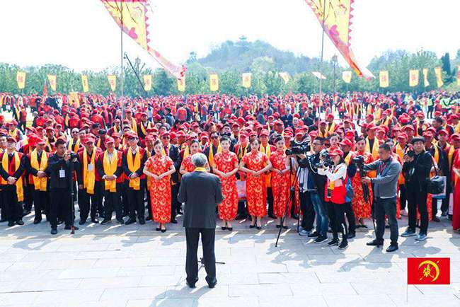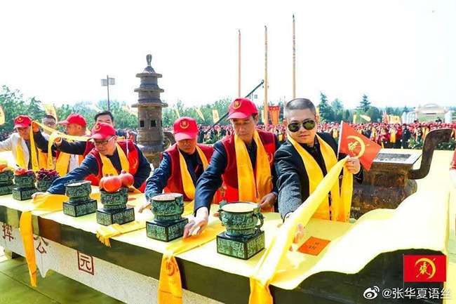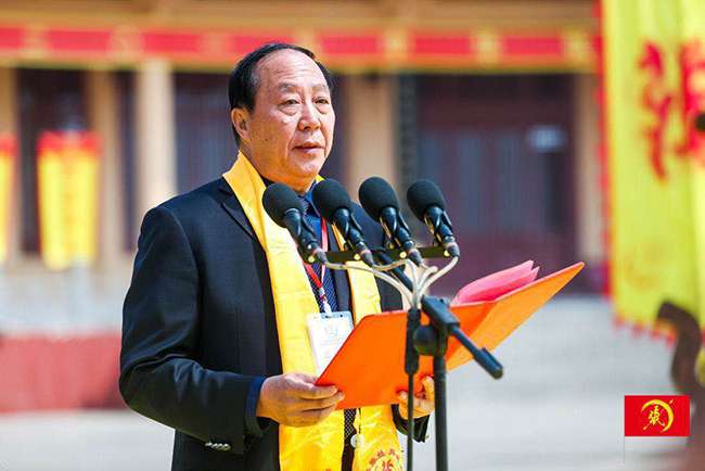4月28日上午,河南省人大常委会原副主任、世界张氏总会名誉主席张世军在“2019中华张氏拜祖大典”拜祖台上,恭读拜祖祭文,感念挥公功绩,抚慰后人心灵。