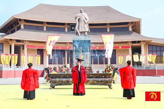 祭祖大典开始后,来自世界各地的张氏宗亲代表先后走上拜祖台,向挥公像敬献花篮,行三献礼,净手上香。现场全体人员面向挥公像,满怀崇敬之情,深深三鞠躬。