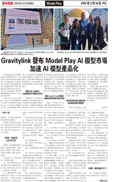 适逢 2019 Google I/O 大会期间,Gravitylink 美国时间5月9日下午14时30分在美国山景城正式向全球发布了名为「Model Play」的AI模型市场。该APP不仅为全球开发者提供了 AI 模型展示交流的平台,更能搭配含 Edge TPU 的 Coral Dev Board 进行使用,加速 ML 推理,通过手机实时预览模型运行效果,助力 AI 由原型向产品拓展。
