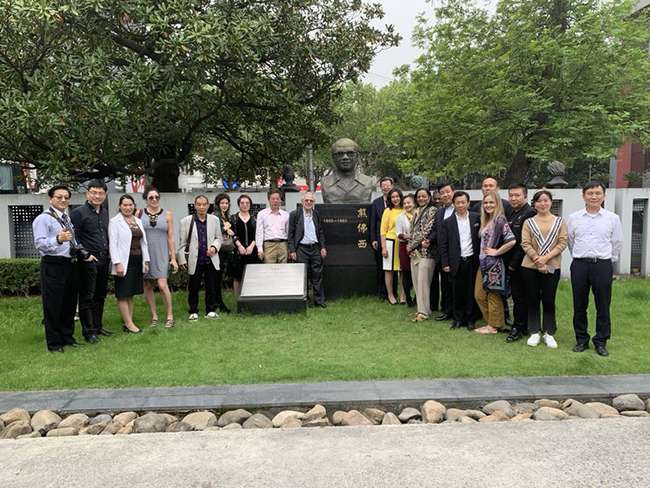 上影演员剧团团长佟瑞欣带领访华团参观巴金故居。