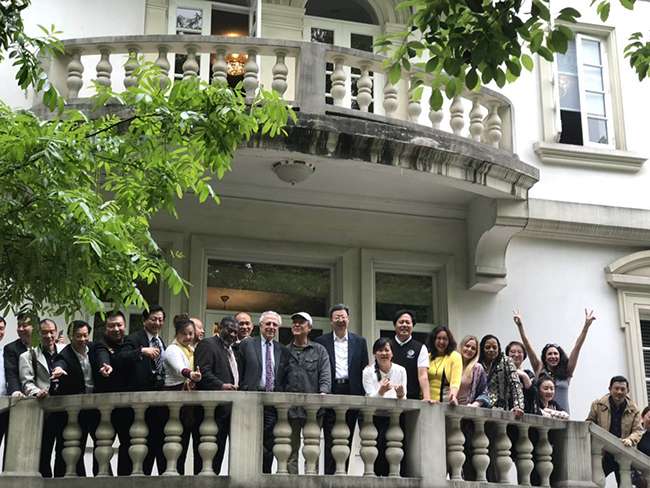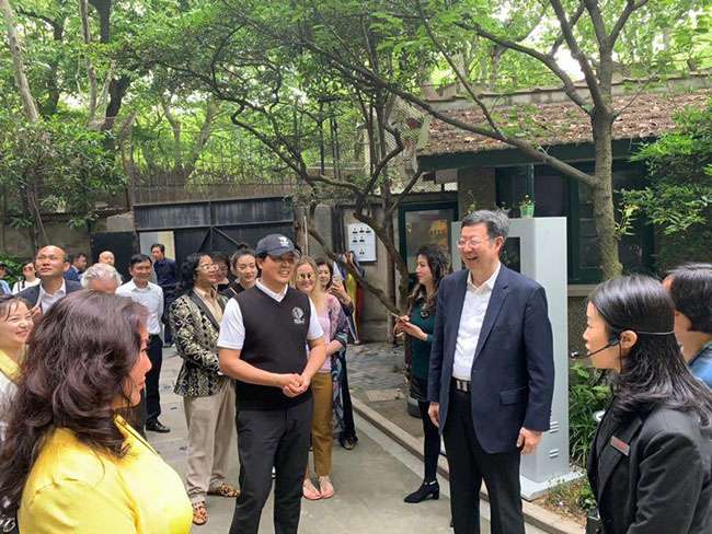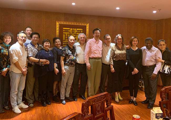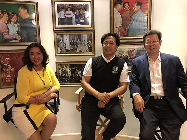 上海影视集团演员剧团团长佟瑞欣,电影艺术家达式常等在武康路会所接待美中企业家商会代表团。