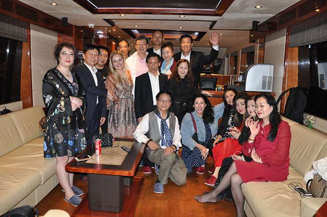 陈远腾董事长在他黄埔江私人游艇上接待孙文铁率领的代表团。