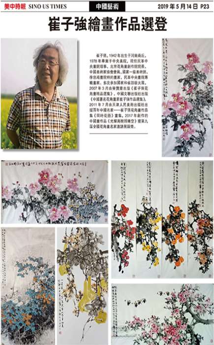 崔子强,1942年出生于河南商丘,1978年毕业于中央美院,现任民革中央画院理事、北京花鸟画创作院院长、中国美术家协会会员、国家一级美术师、徐悲鸿画院特约画家、民革中央画院专职画家。多次参加国家和省部级大展,2007年3月由荣宝斋出版《崔子强花鸟画精品选集》,中国文联出版社出版《中国著名花鸟画家崔子强作品选集》,2011年7月由天津人民美术出版社出版百年中国名家——崔子强花鸟画作品集《闲时花语》画集,2017年创作的中国画作品《光耀高树照晴空》获第九届全国花鸟画名家邀请展银奖。