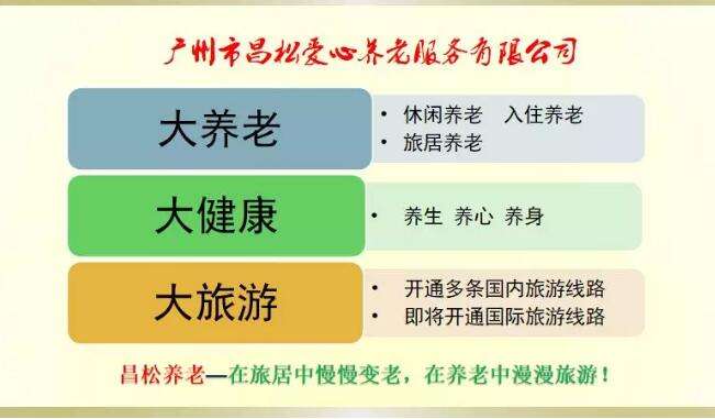 究竟该如何养老?近年来全国各个地方也做了颇多探索。其中,昌松集团所提倡的“分时度假 旅居轮住”的养老模式自2014年推出以来市场反响热烈,在中老年人中获得极高评价,受到广泛的关注和肯定。经过近5年的发展,已形成大养老、大健康、大旅游的三大产业布局,现已拥有昌松之家广州江高老年公寓、韶关花果山温泉养生度假基地、海南五指山居养生基地、海南文昌旅居基地、海南陵水旅居基地、海南海口旅居基地、湖南湘西古丈旅居基地、河源党演田园综合体、韶关客家民宿基地等多个基地,在册会员20000多人,总资产近10亿。今年还将投入运营广州长岗基地和花山基地,拉开2019年新一轮养老产业布局的序幕。