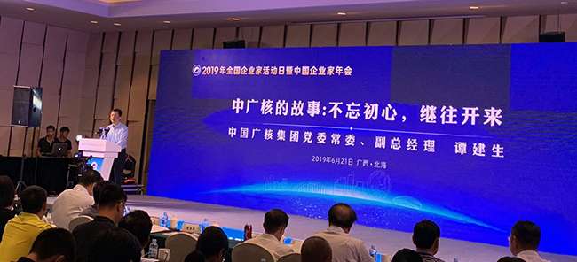 2019全国企业家活动日暨中国企业家年会6月21晚以“袁宝华企业管理金奖实践中国广核集团40年管理经验分享交流会”在北海富丽华大酒店拉开帷幕。会上,由企业管理出版社出版的《从裂变到嬗变——中广核的卓越成长》图书举行发布式。中国企联常务副会长兼理事长朱宏任出席并致辞。