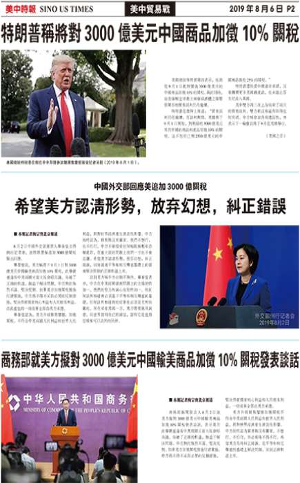 商务部新闻发言人8月2日就美方拟对3000亿美元中国输美商品加征10%关税发表谈话,表示美方此举严重违背中美两国元首大阪会晤共识,背离了正确的轨道,无益于解决问题,中方对此强烈不满、坚决反对。如果美方加征关税措施付诸实施,中方将不得不采取必要的反制措施,坚决捍卫国家核心利益和人民根本利益,一切后果全部由美方承担。