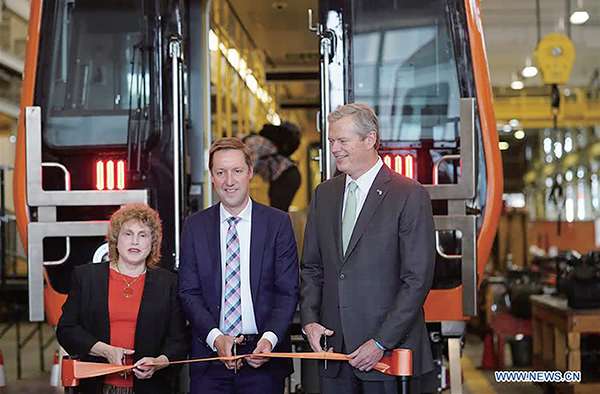 中新社报道,去年12月,中国中车集团为波士顿地铁生产的首列车,在美国中车麻省公司春田工厂下线。