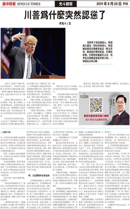 一直给人“正面刚”印象的川总,这次突然认怂了。不等我们正面反击,他就从原有立场悄悄后撤,宣布:“暂缓对3000亿中国商品加征10%关税,延迟至2019年12月15日执行”。