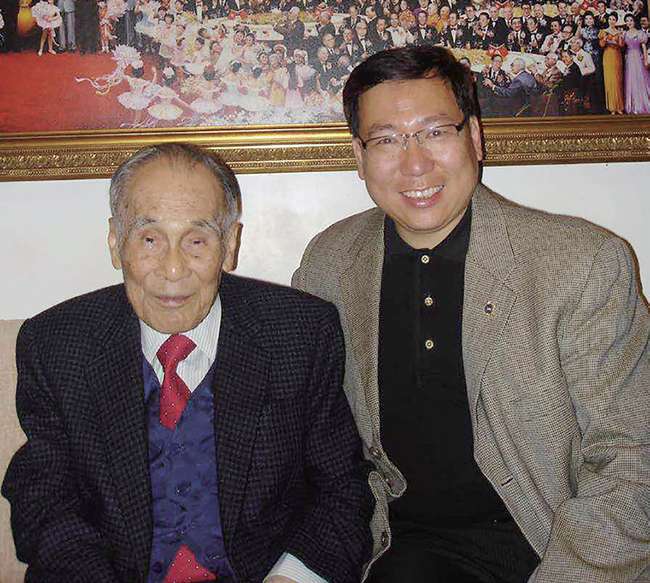2005 年,香港南洋商业银行创办人庄世平老先生(左)指导侄子庄佩源先生(右)工作。