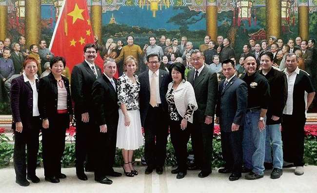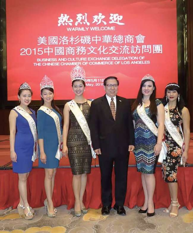 2015 年,庄佩源(右三)带领洛杉矶中华总商会华埠小姐,到中国访问交流。