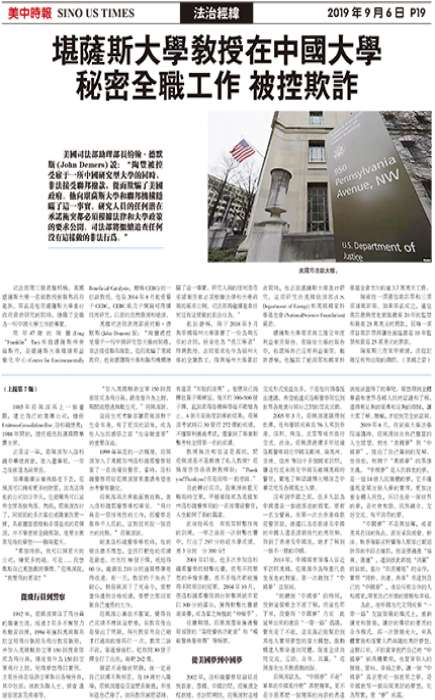 起诉书称,陶于2018年5月与中国福州大学签署了一份为期五年的合同,任命他为“长江学者”特聘教授。合同要求他作为福州大学的全职教工。陶与福州大学签订合同时,他正在堪萨斯大学进行研究,这项研究由美国能源部(U.S. Department of Energy)和美国国家科学基金会(NationalScience Foundation)资助。