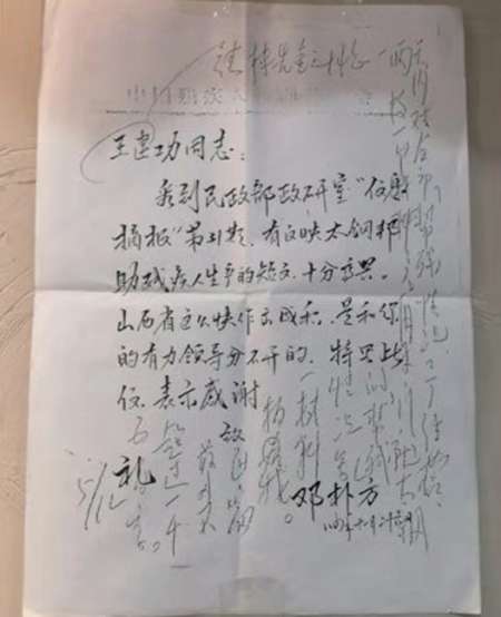 1984年10月,吕吉山策划太钢集团残疾人福利事业引起时任中国残疾人联合会会长邓朴方高度重视和支持。邓朴方看到吕吉山写的有关太钢残疾人文章转载在国家民政部信息摘报第31期简报后,激动的给时任中共山西省委常委,太原市委书记王建功写信表示衷心的感谢。不但如此,邓朴方还不顾高位截瘫痛苦,亲自到太钢残疾人工厂考察并题词。吕吉山成功策划创建了中国最大规模的残疾人福利企业,安排了大量的残疾人就业,成为中国最大规模的残疾人福利工厂企业。