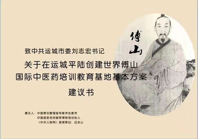 运城市平陆县,是山西教育事业最落后的县域经济区域。但傅说这个人,是全世界傅姓的根祖。而傅山,是享誉世界的文化名人。尤其中医药文化遗产《傅青主女科》等更是在世界中医药文化遗产方面具有重要地位。吕吉山借用这块金字招牌,创意提出在运城平陆县创建“世界傅山国际中医药教育培训基地”。包括创建美国、法国、德国、澳大利亚、英国、台湾、香港、澳门教育传承中医馆,世界中医药国际学术交流中心,中国中医药博物馆、秘方馆,中医绝活绝招绝技馆等。吕吉山说,今后世界各国看中医到中国运城,看西医到北京创意。而运城,又具备在全国乃至世界创建国际中医药教育培训基地的最基本资源条件。吕吉山的策划,适应了五百多万人口运城的天时地利人和机遇。为此,中共运城市委书记刘志宏看到吕吉山的策划案后,立即做出批示给予支持,运城市主管副市长陈竹琴最近会见了吕吉山,表示全力支持。