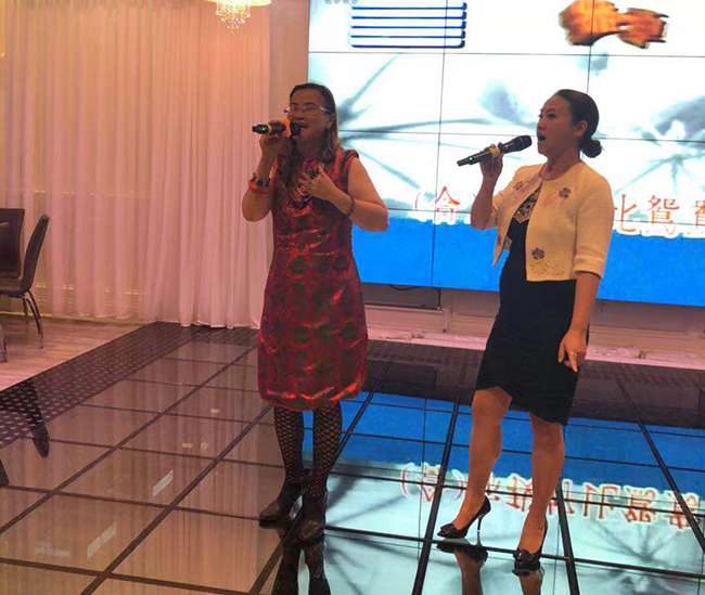 美国国际艺术家联谊会主席杨采烨和歌友Lindgou 一起合唱。。