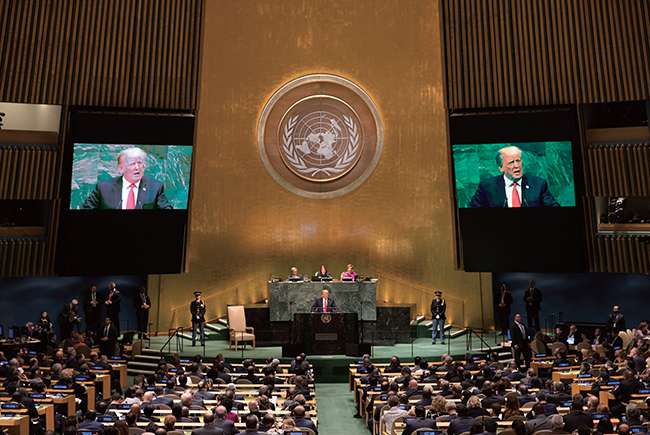就在我站立的这个讲台上,世界各国在冷战(Cold War)高峰时期都曾在此聆听一些总统和总理的演讲。我们曾看到国家的建立。我们曾看到革命的领袖。我们曾看到那些以希望激励我们的圣者、以热情激发我们的叛逆者,以及以勇气鼓舞我们的英雄们。他们都曾在这个世界最大的舞台上分享计划、提议、远见和想法。