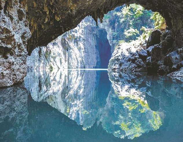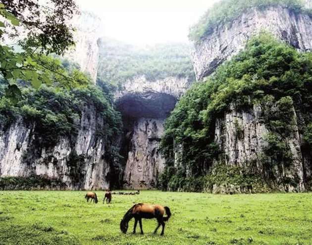 七、九洞天。位于毕节市大方、纳雍两县交界的六冲河上。因其伏流在长约5公里的河段上有九个风格迥异的洞天而得名。九洞天溶洞伏流河水流量大,伏流幽深,每个“洞天”都由一组风格迥异的喀斯特景观组成,集伏流、峡谷、洞穴、天桥、天坑、漏斗孤峰及古生物化石为一体,形成了一处雄秀奇丽的岩溶大观,被中外岩溶专家誉为“中国岩溶百科全书”。