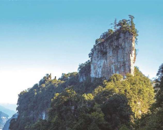 六、 油杉河。位于毕节市大方县东北端。由于历史原因和地理限制,这里近乎处于原始状态。全境奇峰连绵,峄石嵯峨,沟壑幽深,瀑泉潺潺,溪涧凝碧,林木蓊郁。作为油杉河第一名山,仙宇峰三面环水,平地拔起,顺看如擎天一柱,侧看如巨大屏风,远看是群峰一峦,近看则削壁千仞。山顶有一座修建于乾隆年间的观音庙,至今香火不断。油衫河景区被授予“中国最美休闲度假旅游目的地”荣誉称号,油杉河大峡谷被评为国家级森林公园。