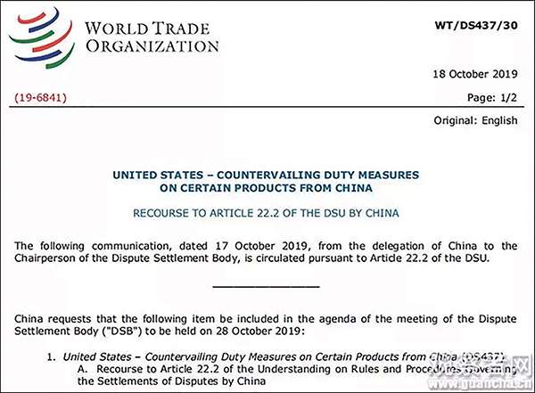 8月15日,WTO争端解决机构通过了中国诉美国反补贴措施案(DS437)执行之诉的上诉机构报告。