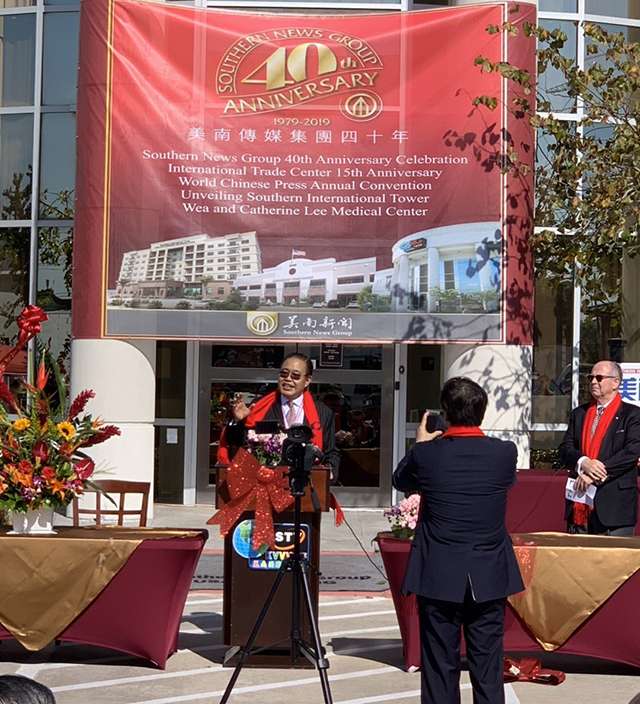 见证时代,继往开来!美南传媒集团成立40周年庆典于11月6日在休斯顿美南新闻中心大楼绿色广场盛大举行。美国国会议员希拉·杰克森·李、国会议员艾尔·格林、德克萨斯州议员Ron Ronald、莱克杰克森市市长鲍勃·西普尔(Bob Sipple)、印度尼西亚共和国驻休斯顿总领事Sylvia Shirley Malinton、金鹰企业联盟总商会主席、中国建材(绿色)海外发展委员会主席李生、海外华文传媒协会主席项翔等以及大休斯顿地区政治、经济、文化、艺术、法律、地产、商界等代表数百人应邀出席。国会议员候选人金诺威和金融顾问许莹莹主持。