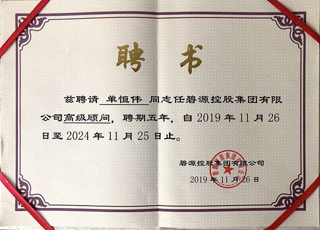 2019年11月26日,中国社会经济文化交流协会副会长、河南省慈善总会副会长单恒伟受聘担任碧源控股集团公司高级顾问。
