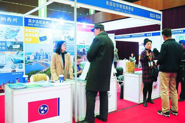 美国驻华大使馆组织了纽约州、南卡罗来纳州、宾夕法尼亚州、佐治亚州、爱达荷州、田纳西州等11个州的经贸代表团参会并设展,围绕加工制造业、农业领域、服务业投资,以及进出口贸易、知识产权等方面,与中方及各国企业开展了广泛而深入的洽谈。