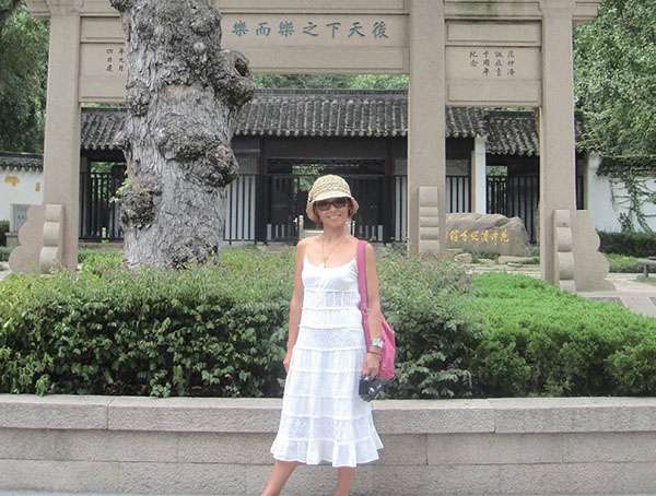 2012 年,范晓莉在中国苏州天平山拜谒先祖范仲淹。