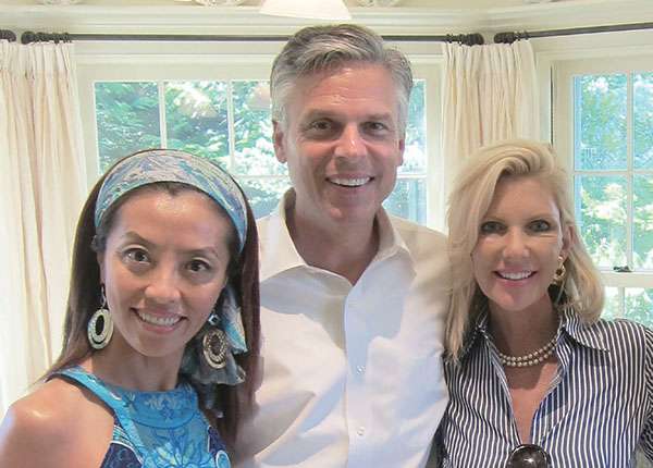 2011 年,范晓莉在纽约汉普顿寓所招待美国驻中国前大使洪博培及夫人。